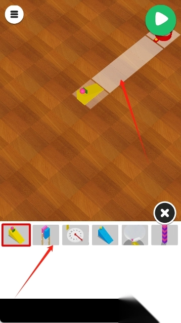 骨牌放置操作:点击屏幕右侧骨牌栏选择骨牌类型,点击场景中任意位置放置骨牌,手指拖动可调整骨牌方向与角度,长按可删除已放置的骨牌。