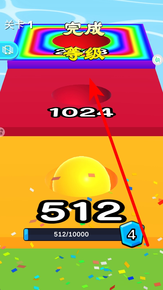 把操作推进到关卡的终点位置,只要合成出指定等级的弹球就能完成当前关卡。通关之后会进入全新的关卡,此时难度也会随之提升,玩家可以借助上一关卡积累下来的高阶弹球所带来的优势,继续进行合成操作来躲避障碍,向着更高阶的关卡发起挑战。