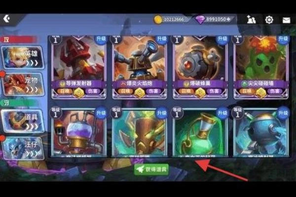 打开编队界面(红箭头所指处),对道具“导弹熔炉”进行升级,调整阵容配置后,参与“神魔战场”的策略对战,以此提升段位。