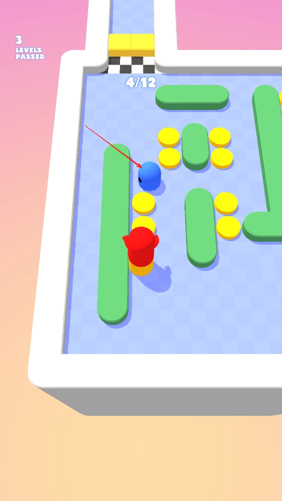 通过摇杆控制迷宫里的小人在迷宫中移动,收集地上散落的金币,每拾取一枚金币,小人的高度就会增加一些。