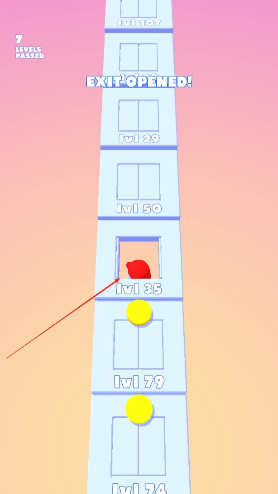 找到迷宫出口并成功抵达后,脚下的金币会在前方铺成路径,开启新关卡,使小人进入其中。