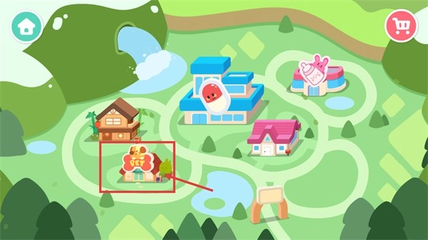 1、选择场景中的目标建筑,进入对应的互动场景,这是开启宠物相关玩法、推进游戏流程的关键步骤。