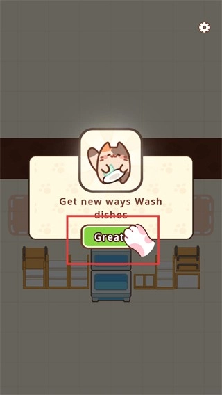 1、看到界面提示后,点击【Great】按钮,解锁游戏,以此推进后厨的操作流程。