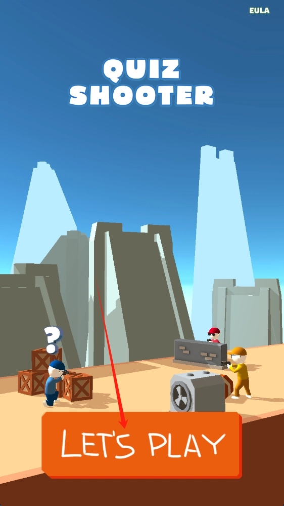 在Quiz-Shooter界面,点击LET'S-PLAY按钮即可开启问答射击挑战,随后点击对应按钮就能开始游戏。