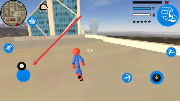 进入游戏后,你可以借助左侧的虚拟摇杆来操控角色移动,让角色在城市屋顶这类区域里穿梭,同时规划好行进的路线,主动靠近目标点或者道具,以此为接下来的行动做好准备。
