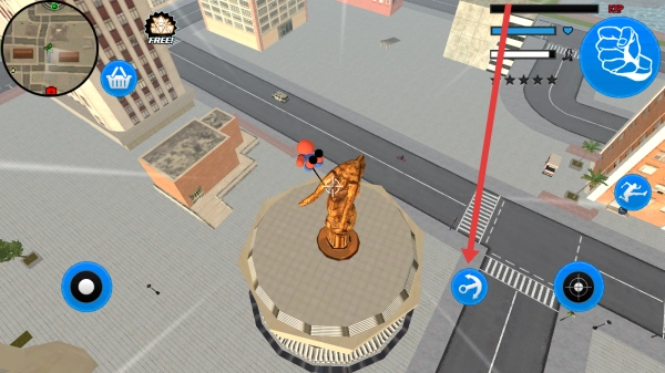 在城市场景里,你可以点击右侧的钩爪图标,发射钩爪来吸附周围的建筑,借助这股力量跨越那些复杂的地形;要是身处雕像这类高处,还能通过它实现快速转移,从而拓展自己的移动范围,让冒险之旅得以顺利推进。