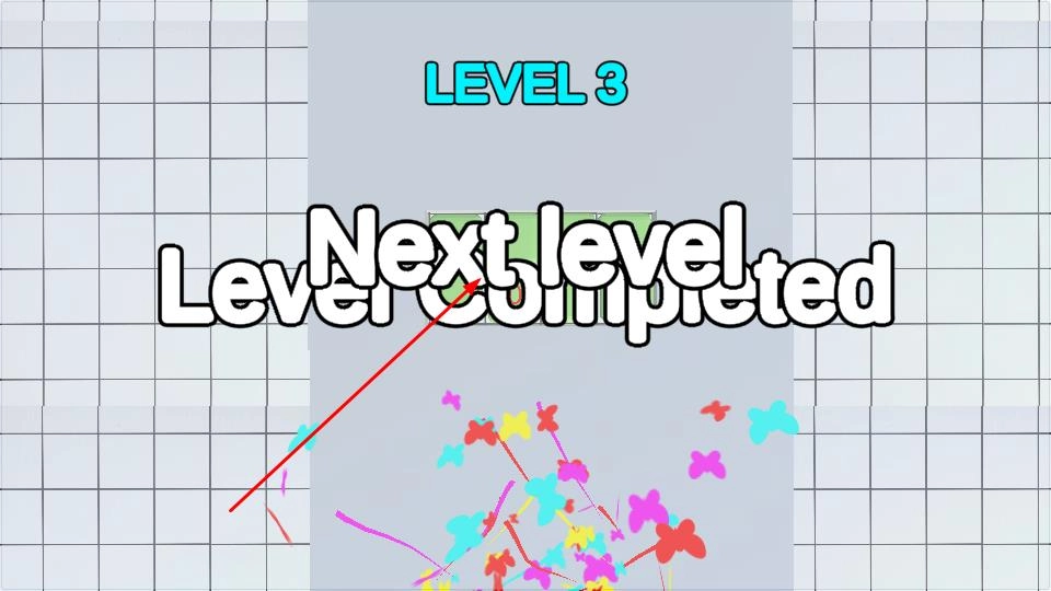 当LEVEL 3的方块填充完成后,屏幕上会出现“Level Completed”的大字,同时还会绽放出彩色蝴蝶和线条特效。点击“Next level”,就能解锁后续的LEVEL 4关卡。