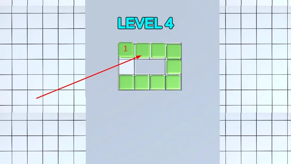 进入LEVEL 4,网格中出现包含数字1的方块与中空的布局结构,需要仔细观察空格所在的位置,继续操控绿色方块进行移动,借助拼接填补的方法,完成这一新关卡所要求的方块布局目标。