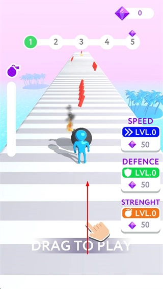 拖动屏幕来操控蓝色小人在跑道上移动,避开红色障碍物,同时收集道具。