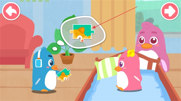 企鹅宝宝想缓和和妹妹的关系,于是打算和她一起玩拼图,快点击拼图,和妹妹一起互动吧。