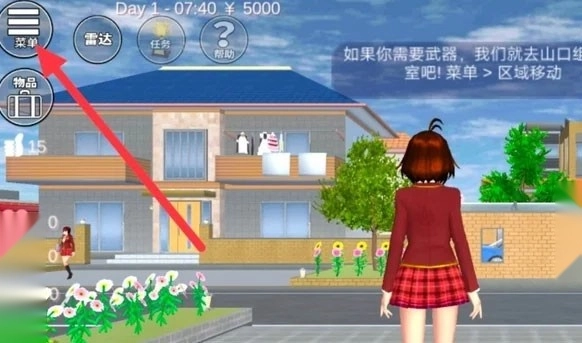 1、启动樱花校园模拟器后,点击界面左上角的菜单按钮,具体位置可参考下方图示: