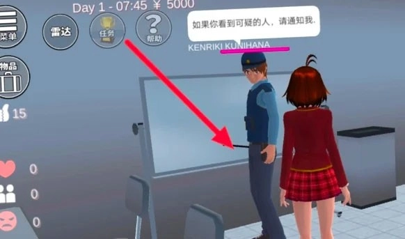 4、接下来会遇到警察叔叔,点击与他进行交流就能完成报警操作了。