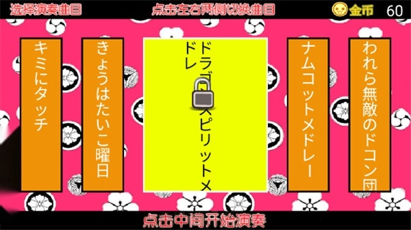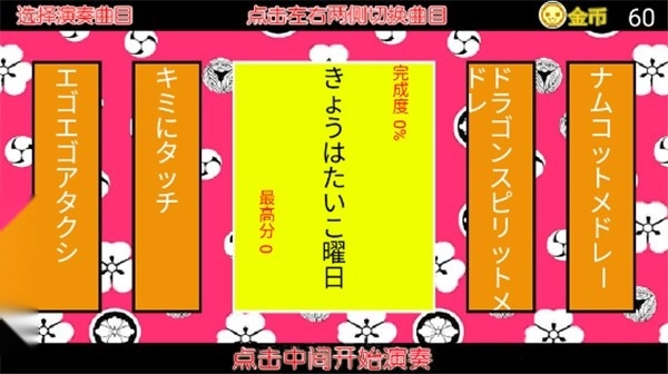 进入太游戏我们可通过点击左右俩次切换不同的曲目,点击屏幕中间即可开始演奏