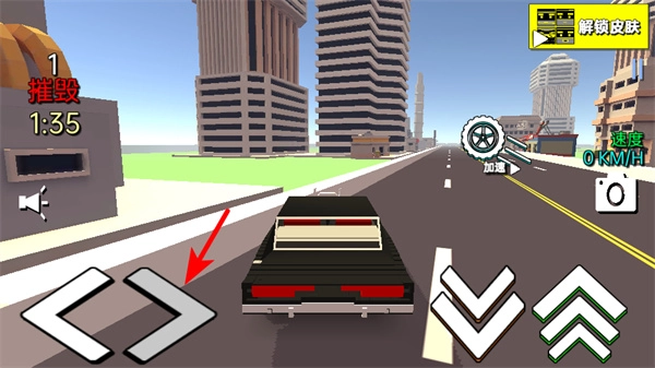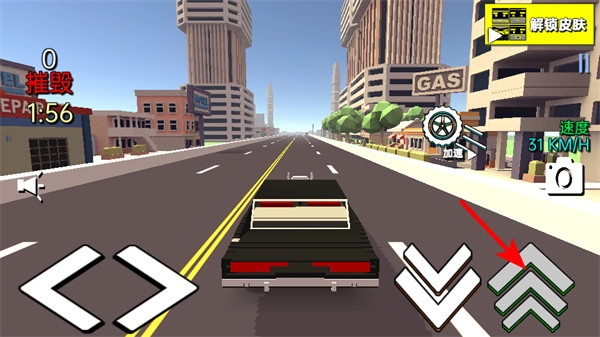 进入驾驶界面后,点击右侧的加速按钮来提高车辆速度,在保持高速行驶的过程中,能够更高效地撞击道路上的物体以获取破坏积分。