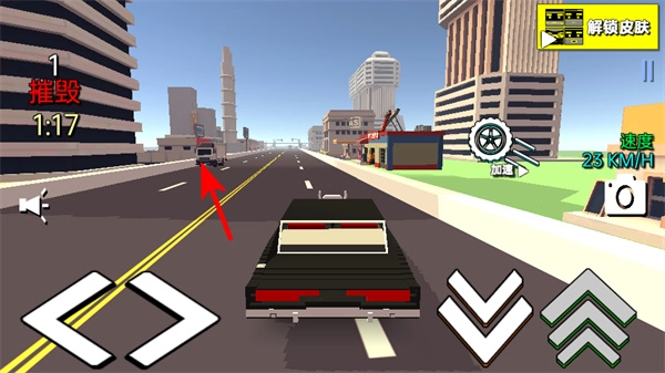 你可以通过左侧的方向按钮来操控车辆进行左右移动,以此调整车辆的行进路线,然后瞄准道路上的车辆、建筑等各类目标实施撞击,从而积累撞击次数并获取游戏积分。