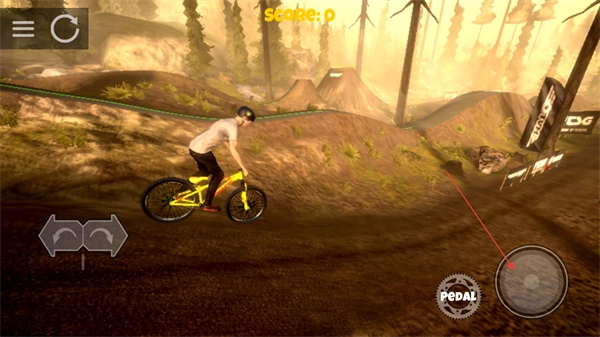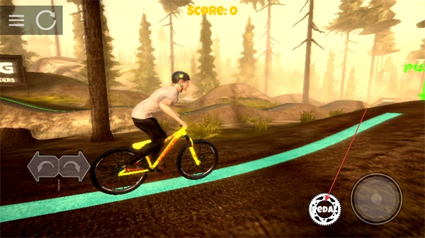 进入关卡后,点击界面上的PEDAL按钮来驱动自行车齿轮以开始骑行,同时要保持在轨迹上,以此推进当前关卡的进程。
