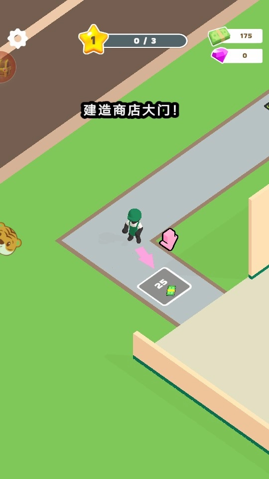 2、先用资金建造商店大门,解锁店铺基础区域。