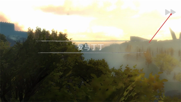 进入爱与丁丁的剧情场景后,点击右上角的箭头按钮,就能推进该剧情场景的内容展示进程。