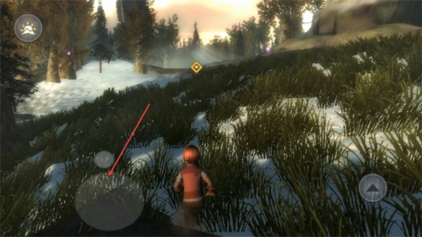 在游戏场景里,你可以通过操控左下角的移动按钮来控制角色移动,然后前往场景内带有目标标识的位置,以此推进冒险进程。