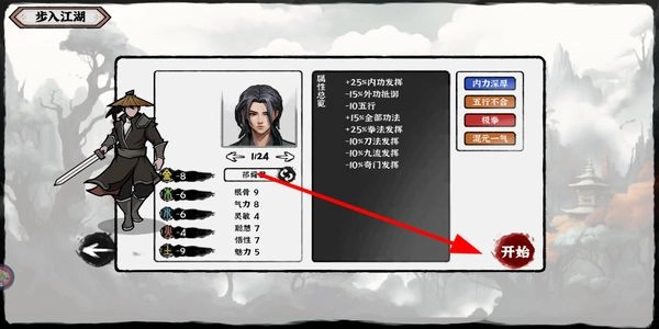 完成角色属性与词条的设置后,点击开始按钮,正式开启在武义九州世界中的冒险旅程。