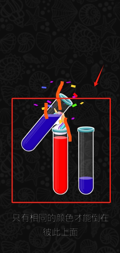 看到三个颜色不一样的试管,只有颜色相同的试管之间才能互相倾倒液体,按照提示想把蓝色液体倒进红色试管是不可以的哦。