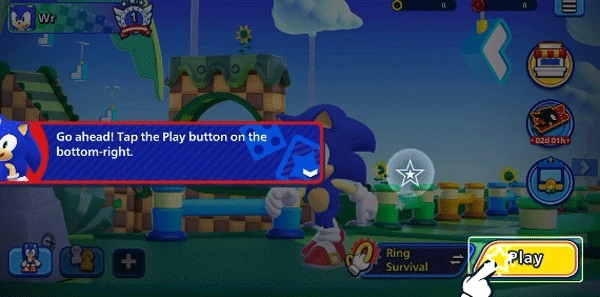 1.打开索尼克大乱斗,进入游戏之后,点击play来展开游玩。
