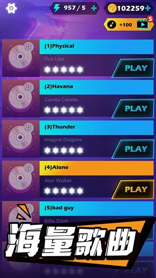 具有许多动感十足的背景音乐,跟随音乐一起律动,开启一场音乐挑战冒险;