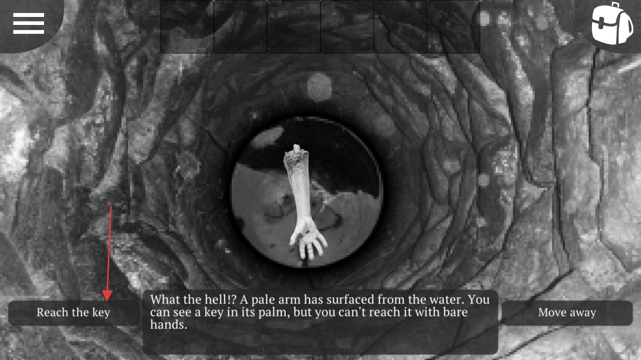 3、面对井中出现的苍白手臂,选择【Reach-the-key】选项,尝试获取手掌中的钥匙。