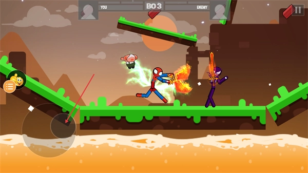 聚焦核心格斗玩法,去除冗余设定,把角色对抗与技能博弈作为核心。胜负由操作精准度和策略规划决定,让玩家能专注体验火柴人格斗对抗的紧张感与爽快感。
