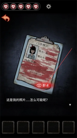 查看已获取的门诊病历,在看到界面所展示的对话后,点击界面里的翻译按钮,对病历上的内容进行解析,以此来获取线索。