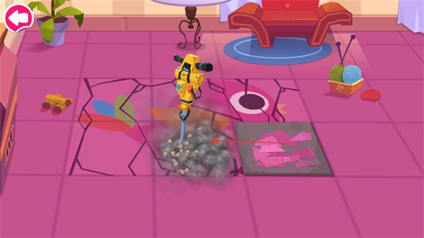 可以利用界面里的工具,像那把黄色的电钻,通过点击操作来拆除已经损坏的地板区域。