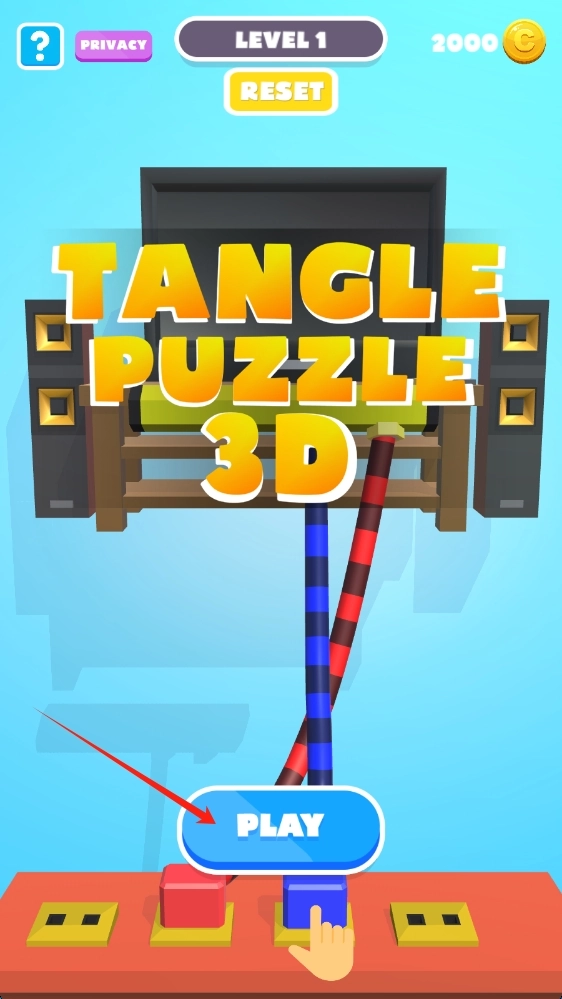 在Tangle-Puzzle-3D界面中,点击PLAY按钮即可开启3D缠绕谜题挑战,随后点击相应按钮就能开始游戏。