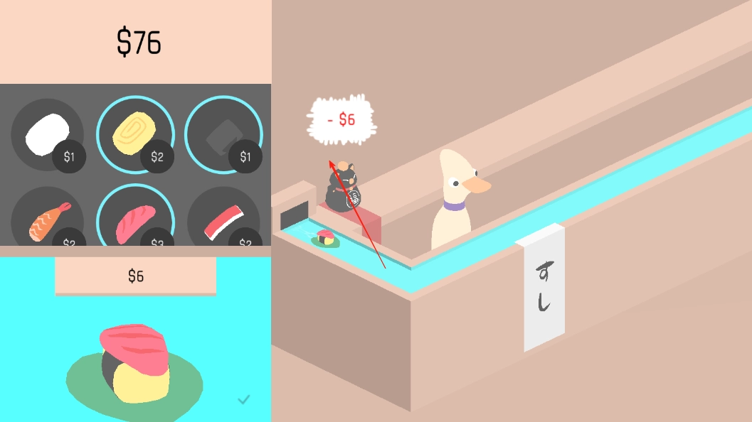 顾客互动机制:每位顾客对寿司的偏好和需求各有不同,为他们定制符合口味的寿司不仅能提升收益,还能收获更多好评,而互动环节也让经营过程更具趣味性和目标性。
