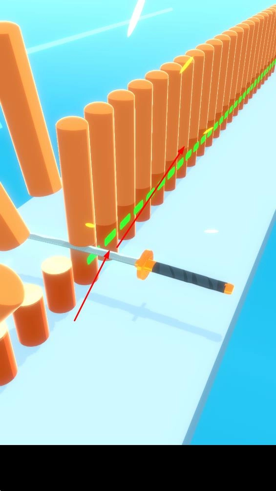 操控刀剑顺着指定路径行进,切割橙色圆柱之类的物体,开启关卡的挑战,为后续的进程打下基础。