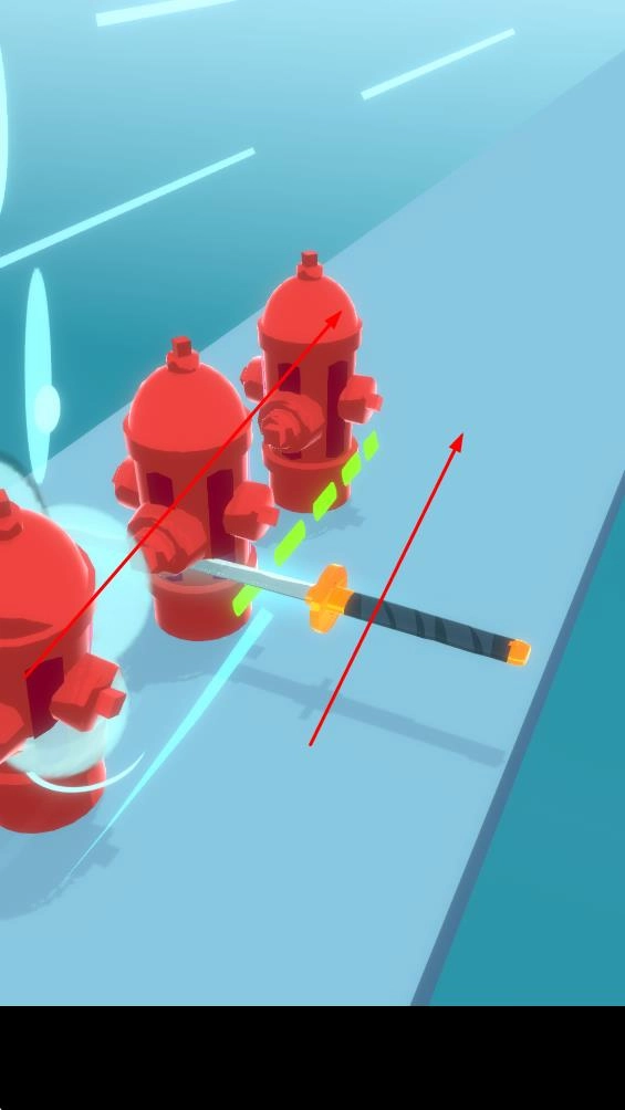 在面对消防栓这类物体时,要保持刀剑移动的节奏来完成切割,朝着关卡目标推进,以此提升游戏效果。
