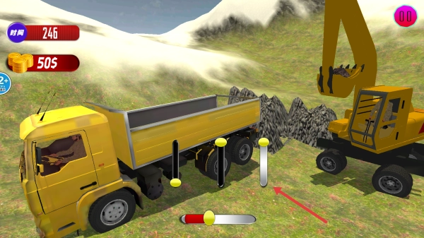 操控挖掘机,把石料装进黄色卡车,完成运输任务,获取金币以解锁更多内容。