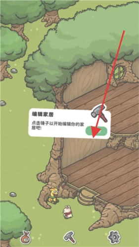 触发“编辑家居”提示后,点击锤子图标进入房屋编辑界面,即可自由布置各类装饰、拓展空间区域,打造出独一无二的专属树屋。