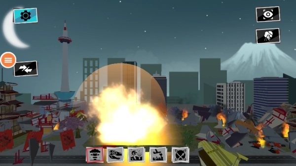 玩家能够自主挑选各类武器,像炸弹、导弹之类,对城市里的不同目标实施精准打击。举例来说,投下炸弹能让高楼在瞬间化为一片平地。