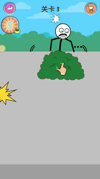 在第三关中,移动绿色草丛就能找到关键路径,进而顺利解救出小人。