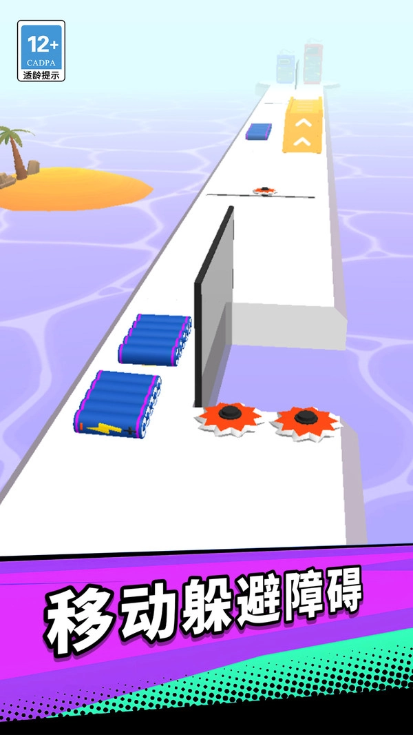 在赛道上拾取电池来保持电量,防止中途被淘汰,与此同时积累电力值,这是解锁新关卡和角色的必要条件。