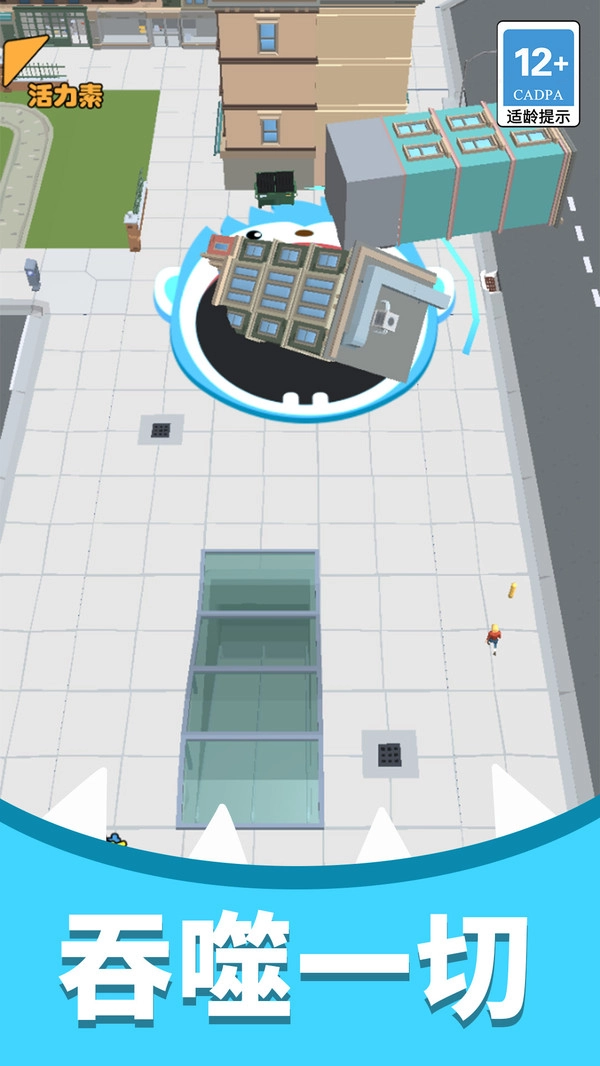 通过滑动操作控制黑洞移动,搜寻能够吞噬的目标。