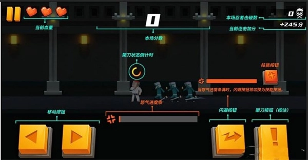 右上角的上方显示的是本场忍者的击破数,下方则是当前的连击加分。