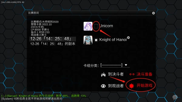 3、之后,勾选【决斗准备】并点击【开始游戏】。