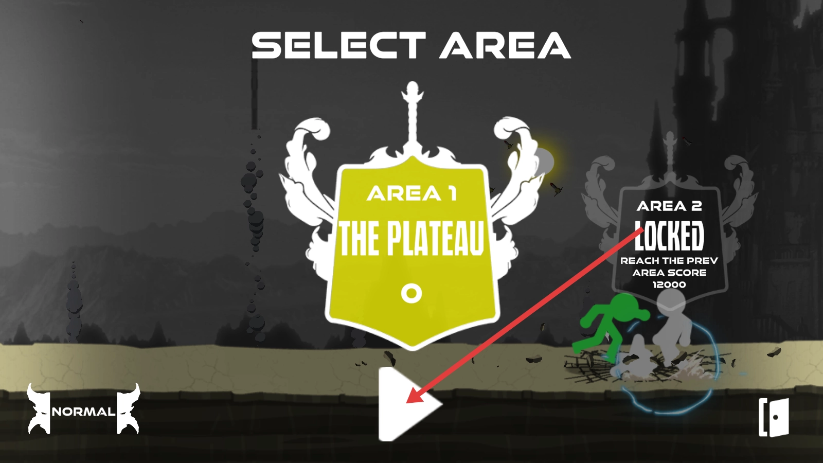 在【SELECT-AREA】界面选择【AREA-1-THE-PLATEAU】,点击播放按钮,即可开启该区域的冒险。