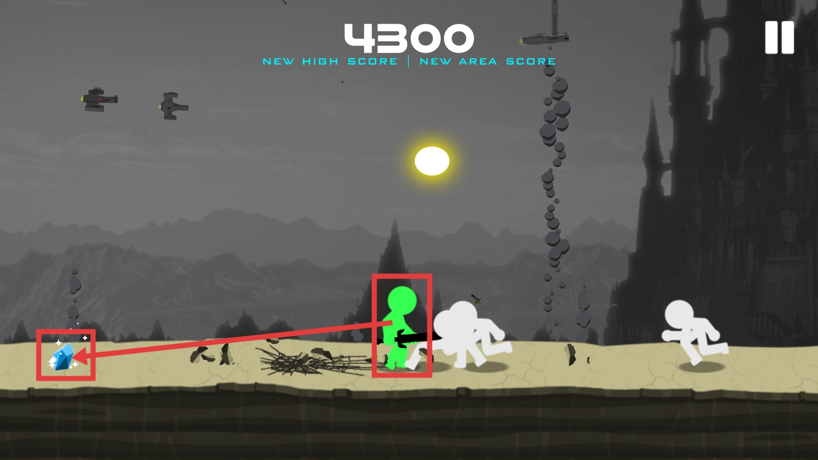 在探索过程中收集蓝色钻石,操控绿色角色战胜敌人,分数已提升到【4300】,继续积累更高分数。