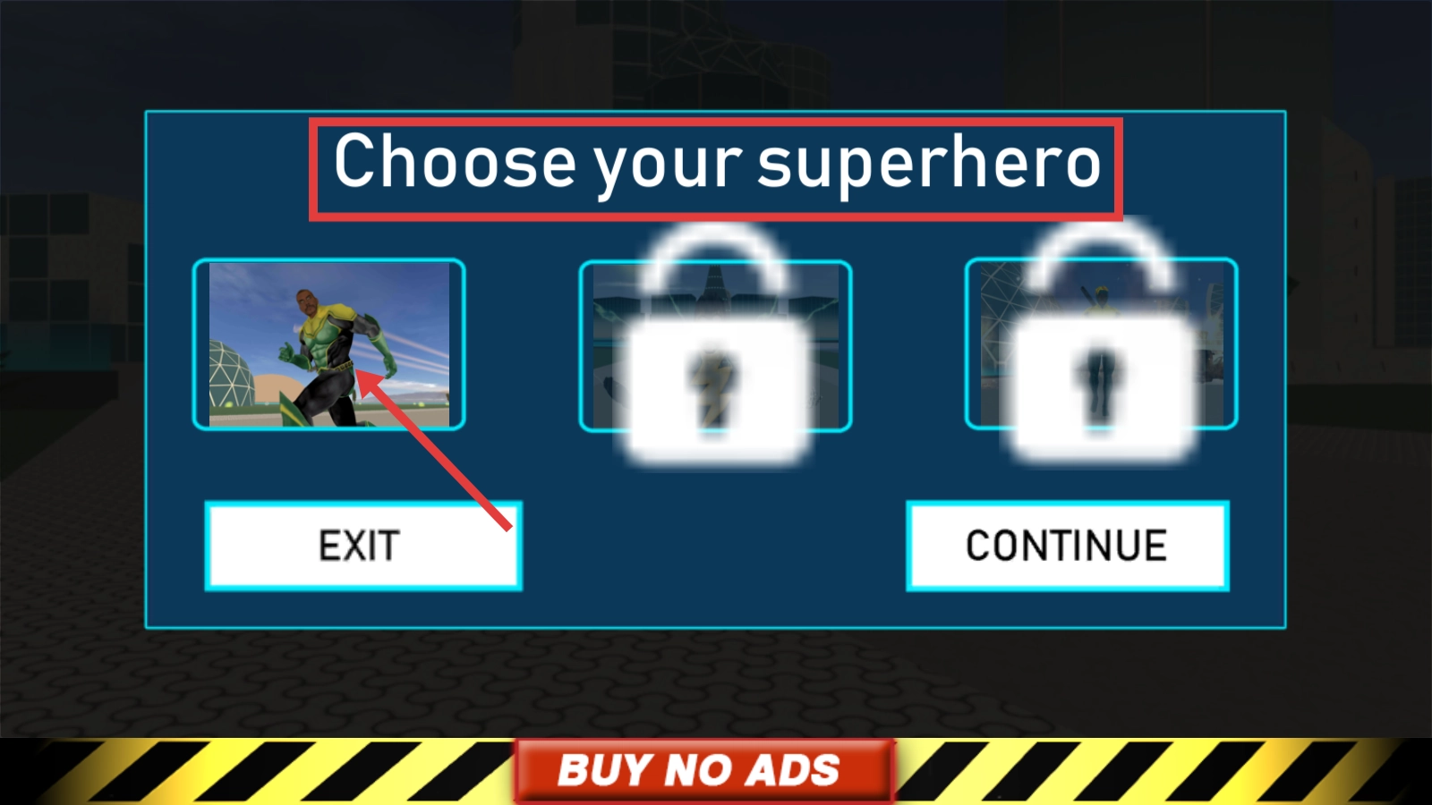 在【Choose-your-superhero】界面,挑选第一个超级英雄,点击【CONTINUE】按钮即可开启冒险之旅。