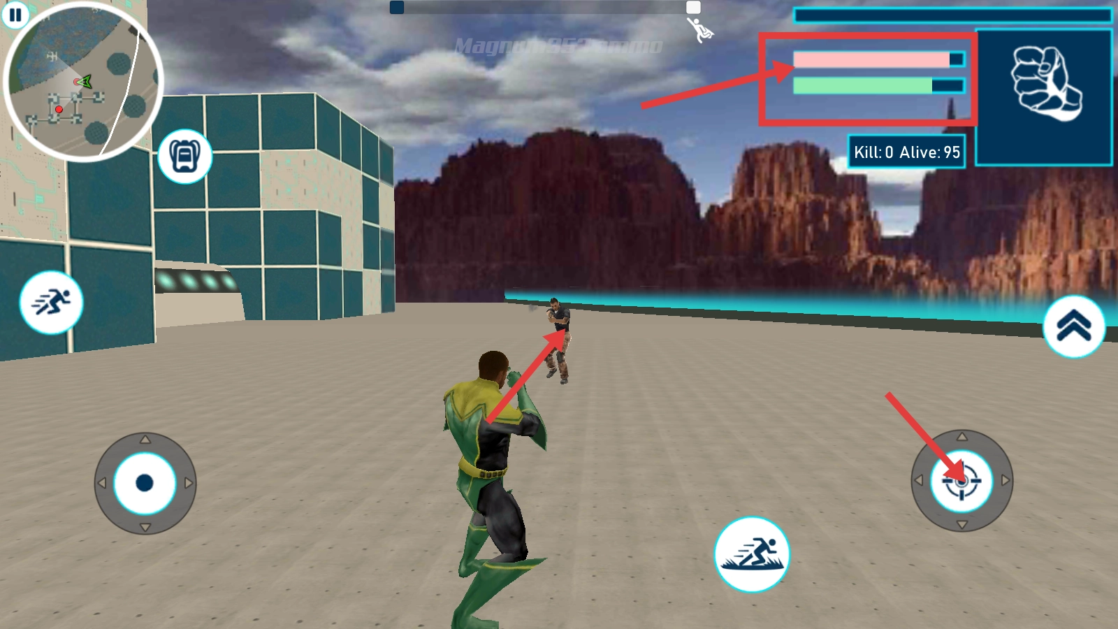 通过操控左侧的轮盘与右侧的按键,让超级英雄能够灵活移动,从而探索地图中的各个场景。