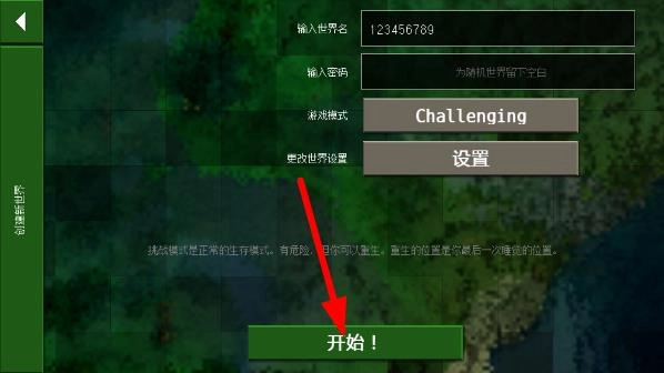 创建世界后点击开始;
