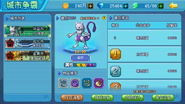 1、城市争霸作为《口袋新世代》里颇具规模的核心玩法,设置了实力强劲的据点BOSS等待各位玩家前来挑战。训练师们得一路突破层层阻碍、战胜对手,才能赢得丰厚奖励!要不要来检验一下自己的真实实力呢?
