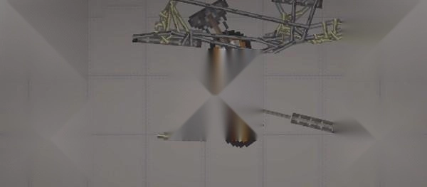 3、要注意的是,这种不稳定的结构必须加上支柱——也就是机头中间的长铁块,把它调成无重力且不碰撞的状态,连接到机头外壳就可以了